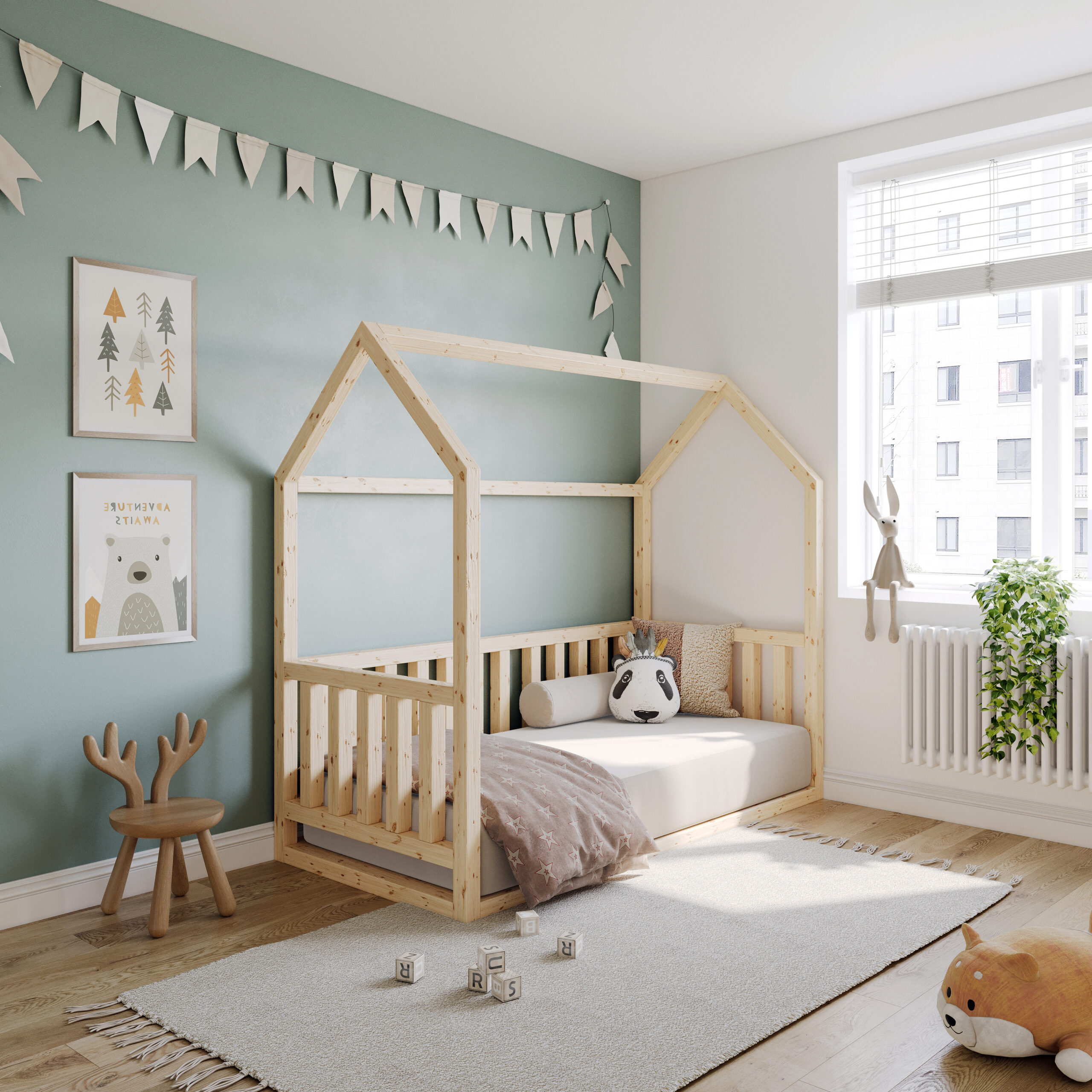 Skap et magisk sted for din unge med vår unike husformede barneseng. Denne sengen er ikke bare et sted for søvn, men også et sted for å å utforske og fantasere i. Vår husseng kombinerer funksjonalitet med estetikk for å skape et trygt og fint sted for barnet ditt.